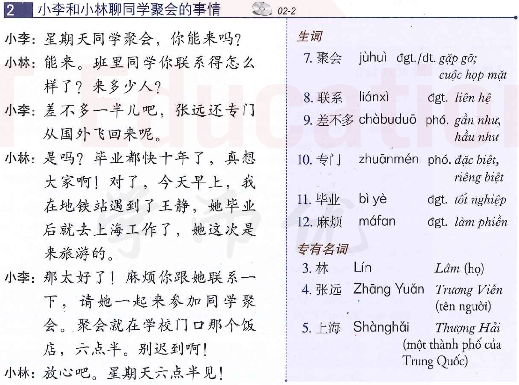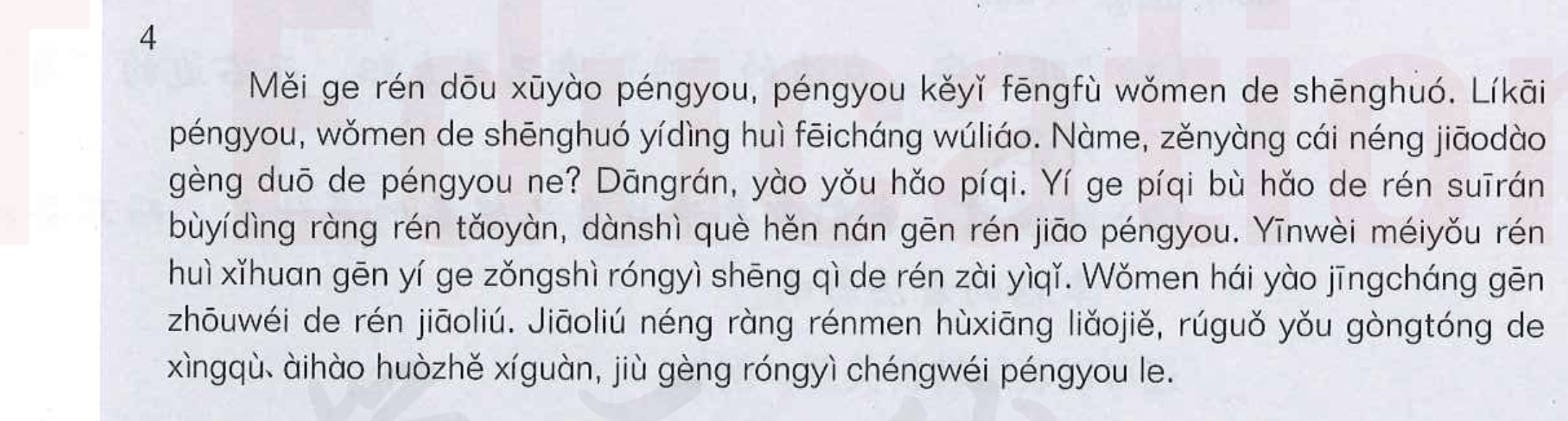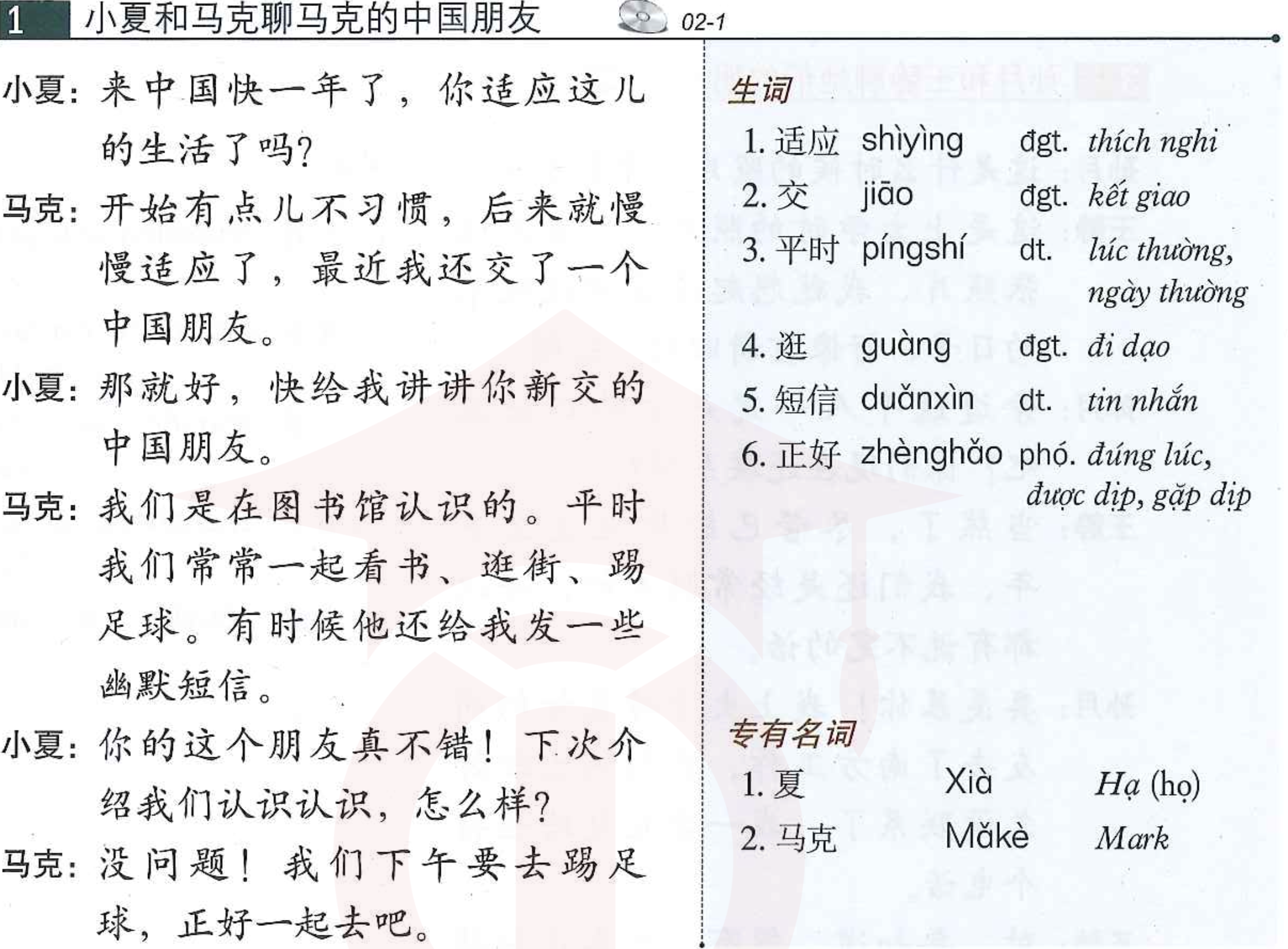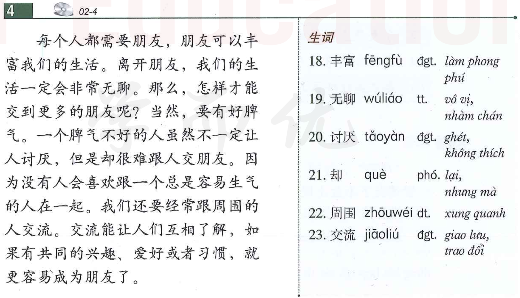 Bài 2, sách HSK 4 quyển thượng, sách giáo khoa tiêu chuẩn.