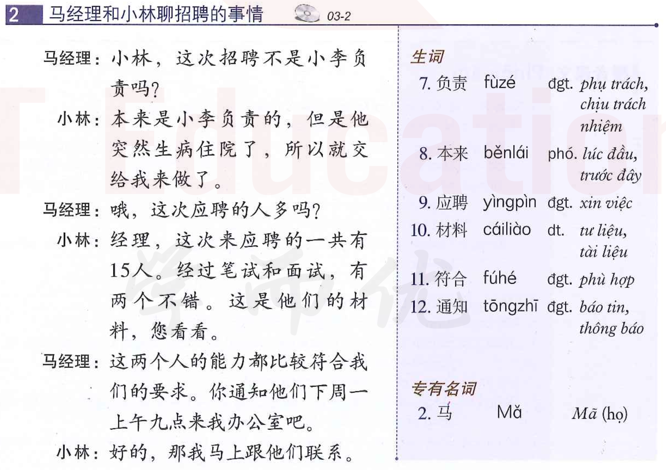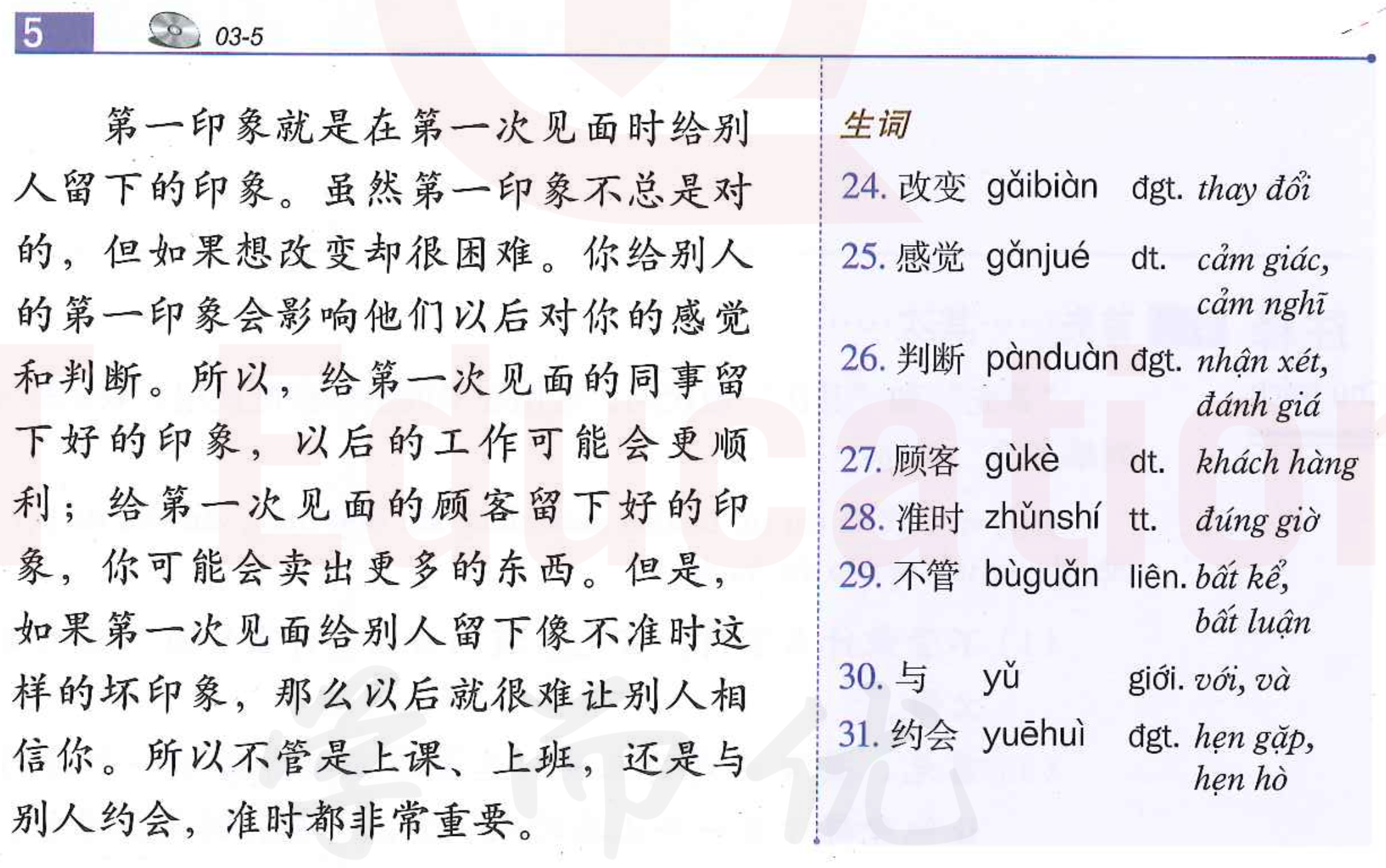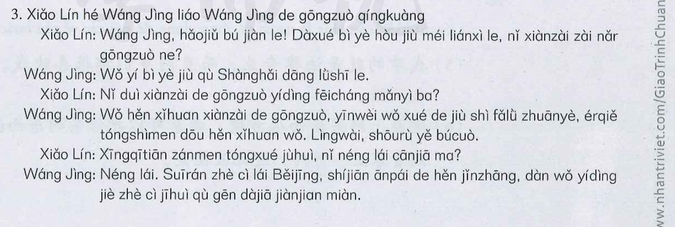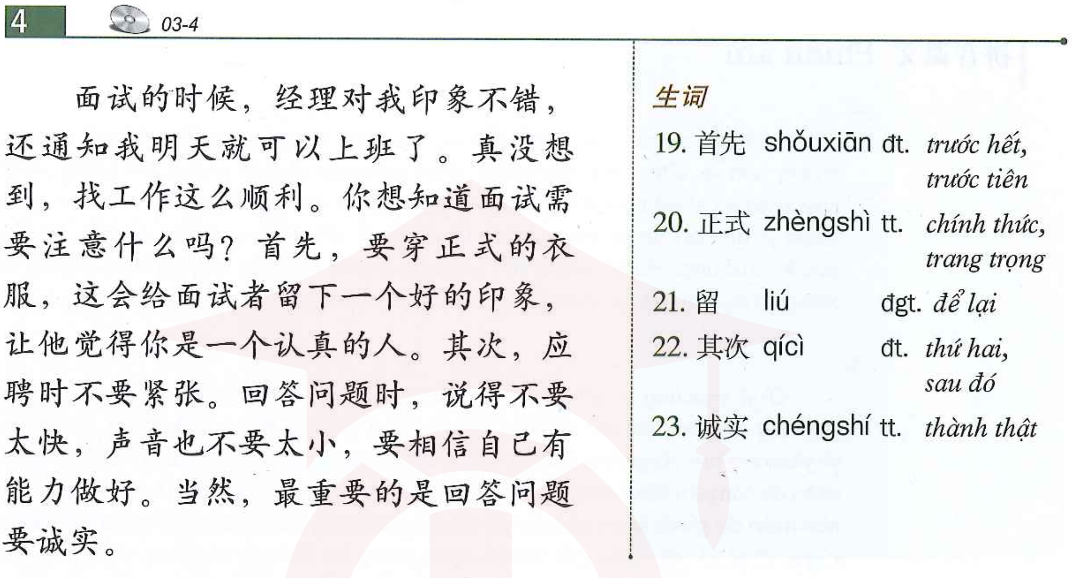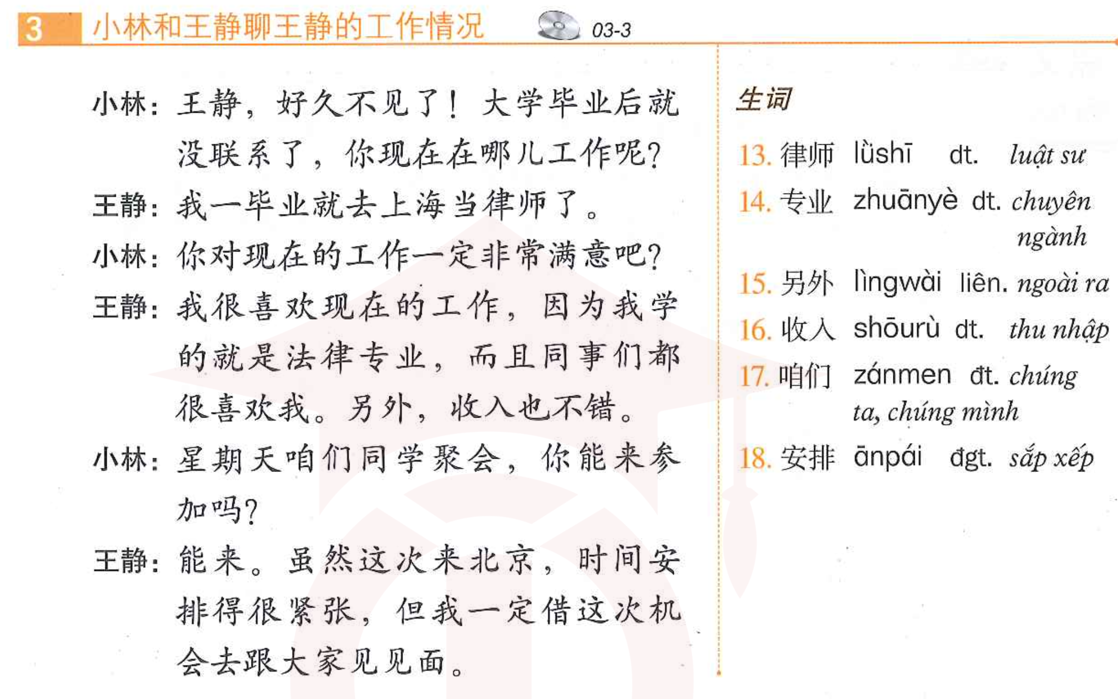 Bài 3, sách HSK 4 quyển thượng, sách giáo khoa tiêu chuẩn.