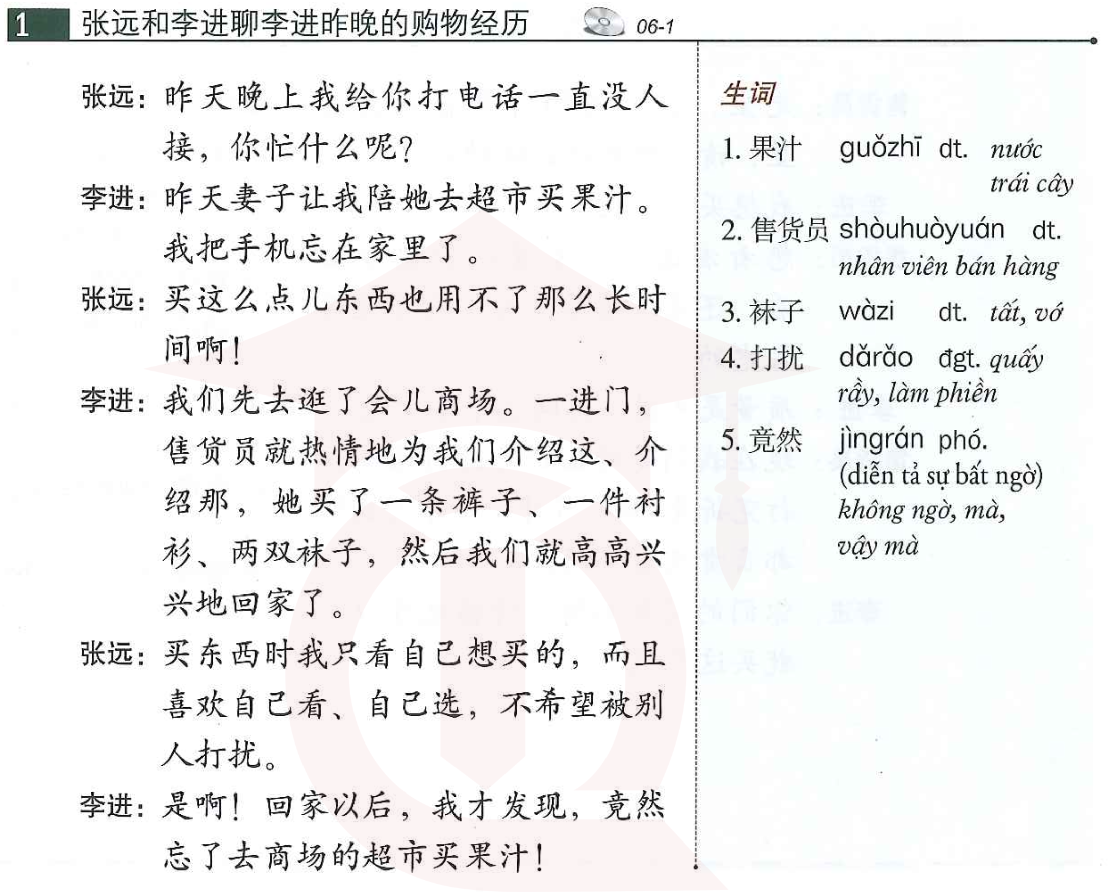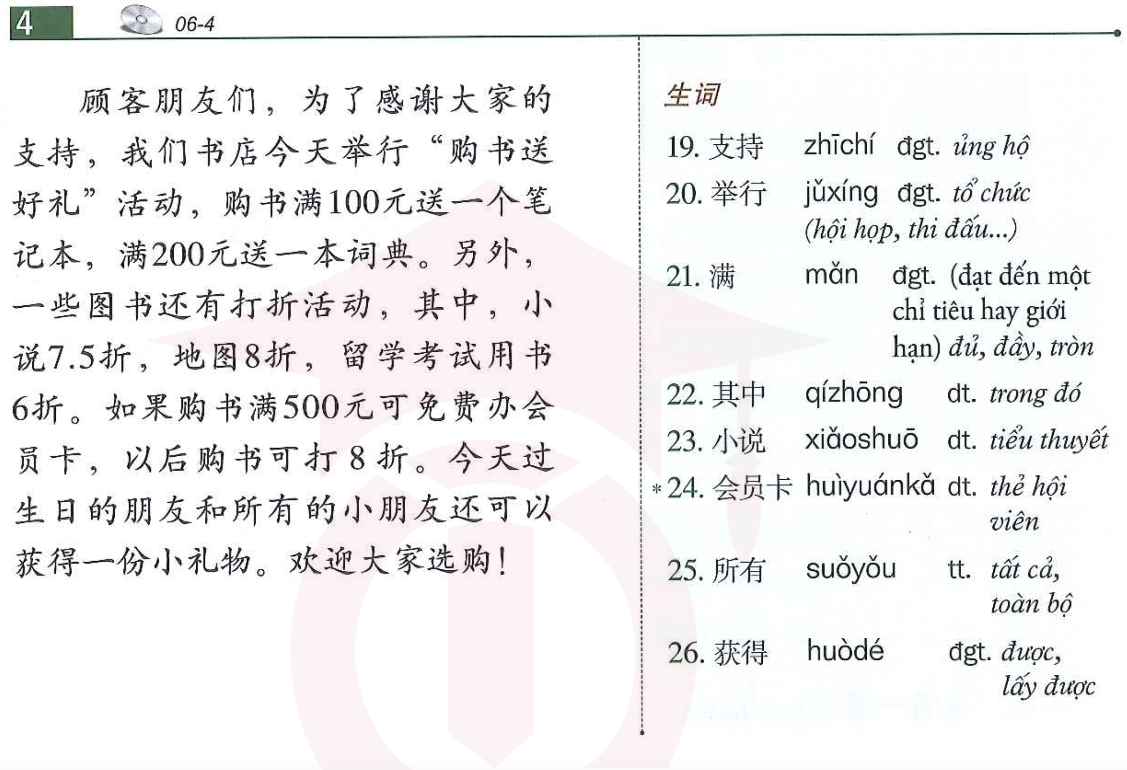 Bài 6, sách HSK 4 quyển thượng, sách giáo khoa tiêu chuẩn.
