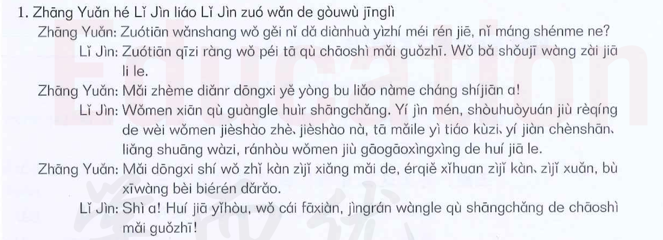 课文 1:张远和李进聊李进昨晚的购物经历
